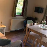 K dispozici je i kompletní kuchyně s plotnou a kuchyňským nádobím, a pokoje nabízejí i výhled na zahradu.